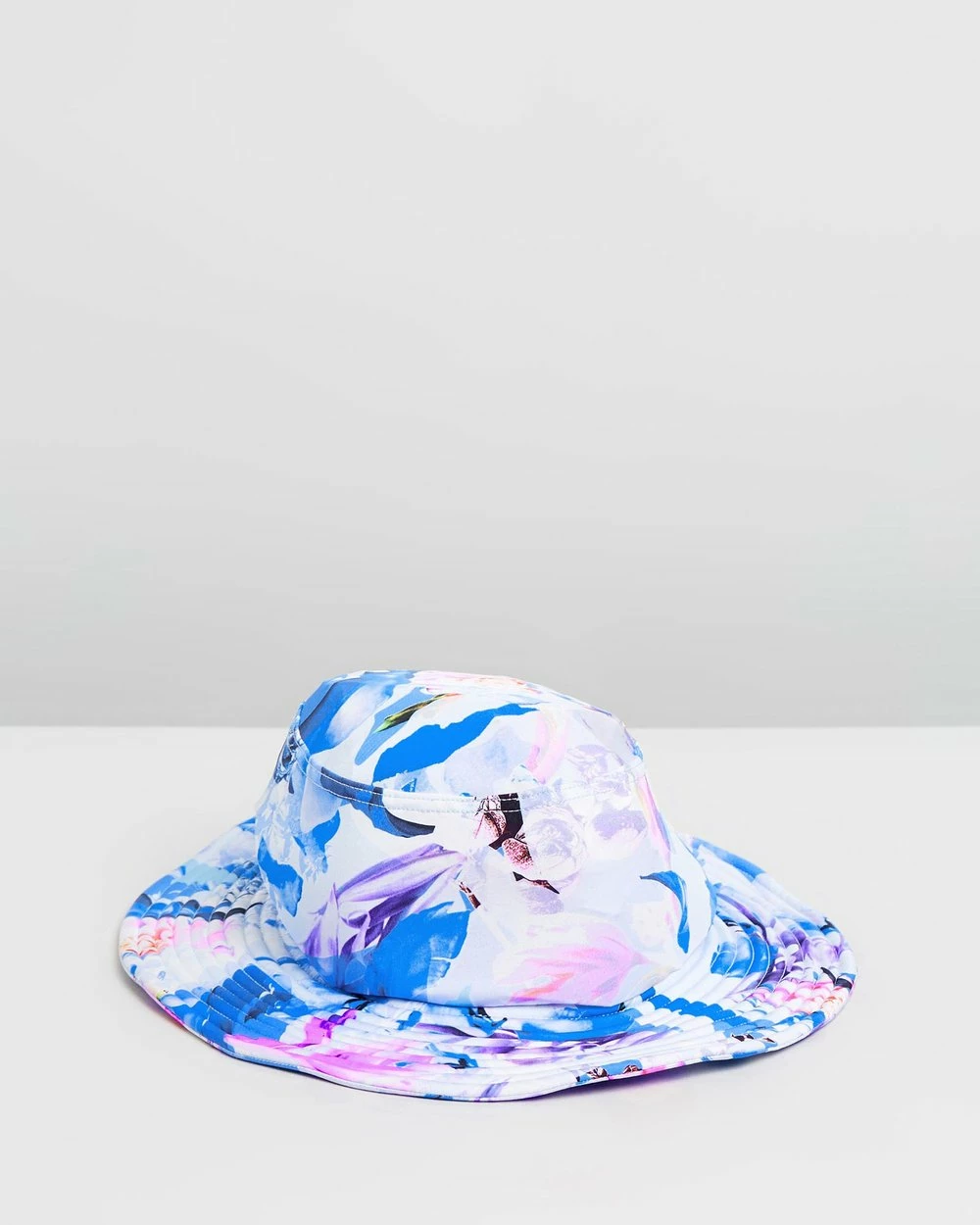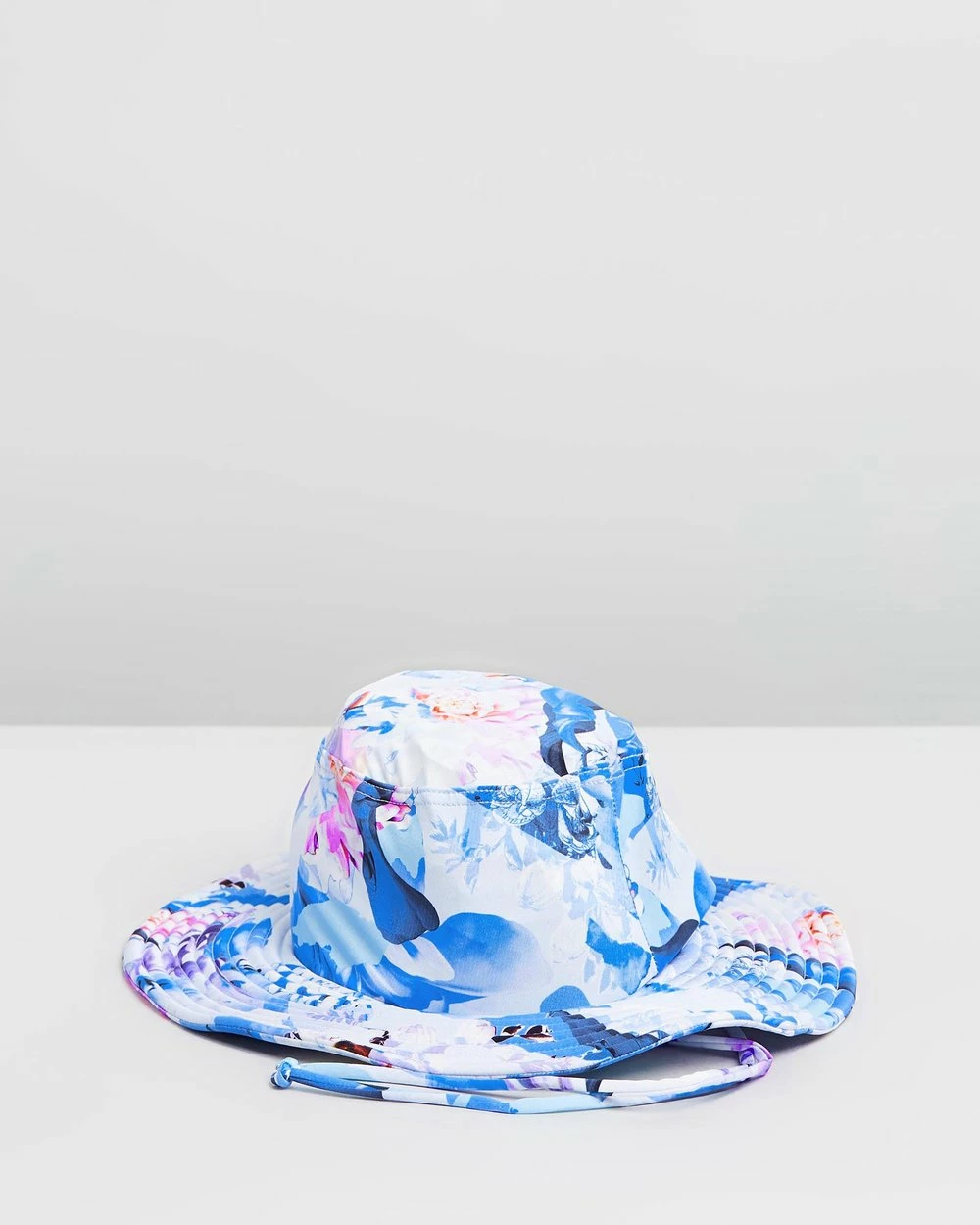 – Magnolia floral print; hues of periwinkle, cobalt, indigo, neon pink, navy, lilac and white