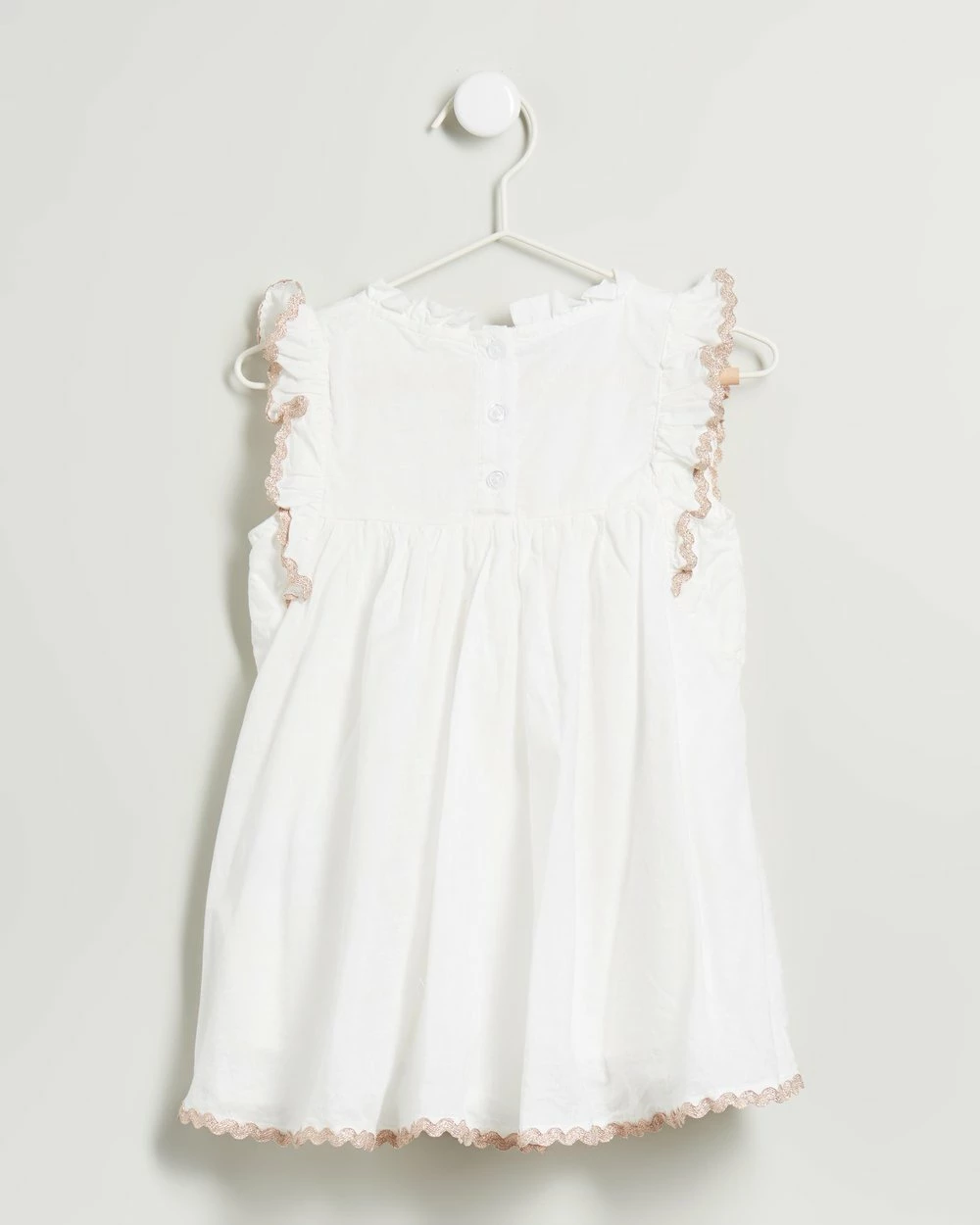 – Sleeveless; flutter detail