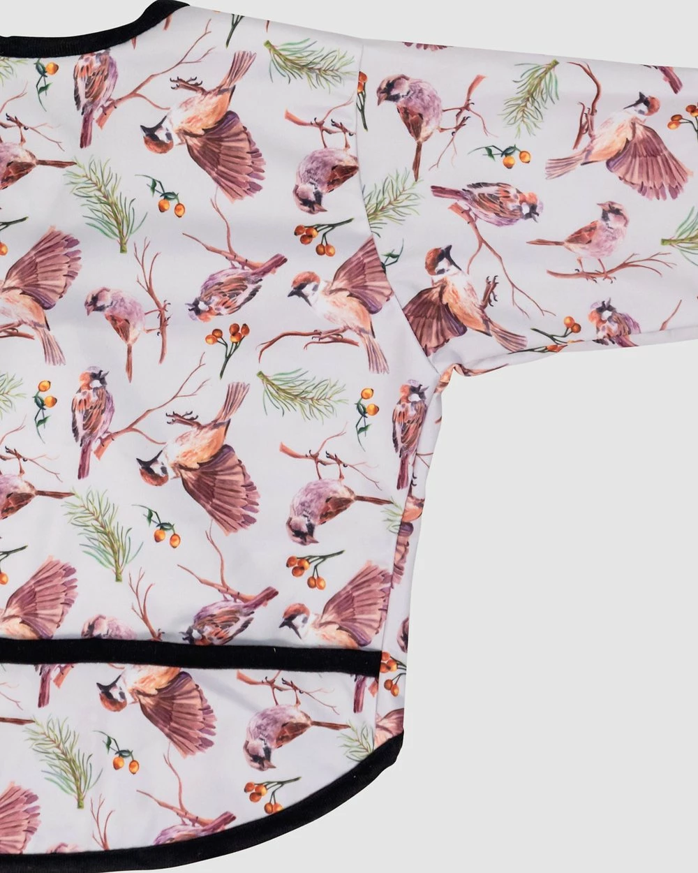 – Made to fit from 6-18 months, providing generous coverage to protect clothes underneath- Exclusive custom-designed hand illustrated prints. – A PUL outer so that minor spills can be wiped off- Long sleeves and elasticised wrists will help to protect clothing underneath. – Velcro closure for safety and ease of removal- A front pocket to catch any spills- Hook loop for hanging- Australian owned and designed for over a decade