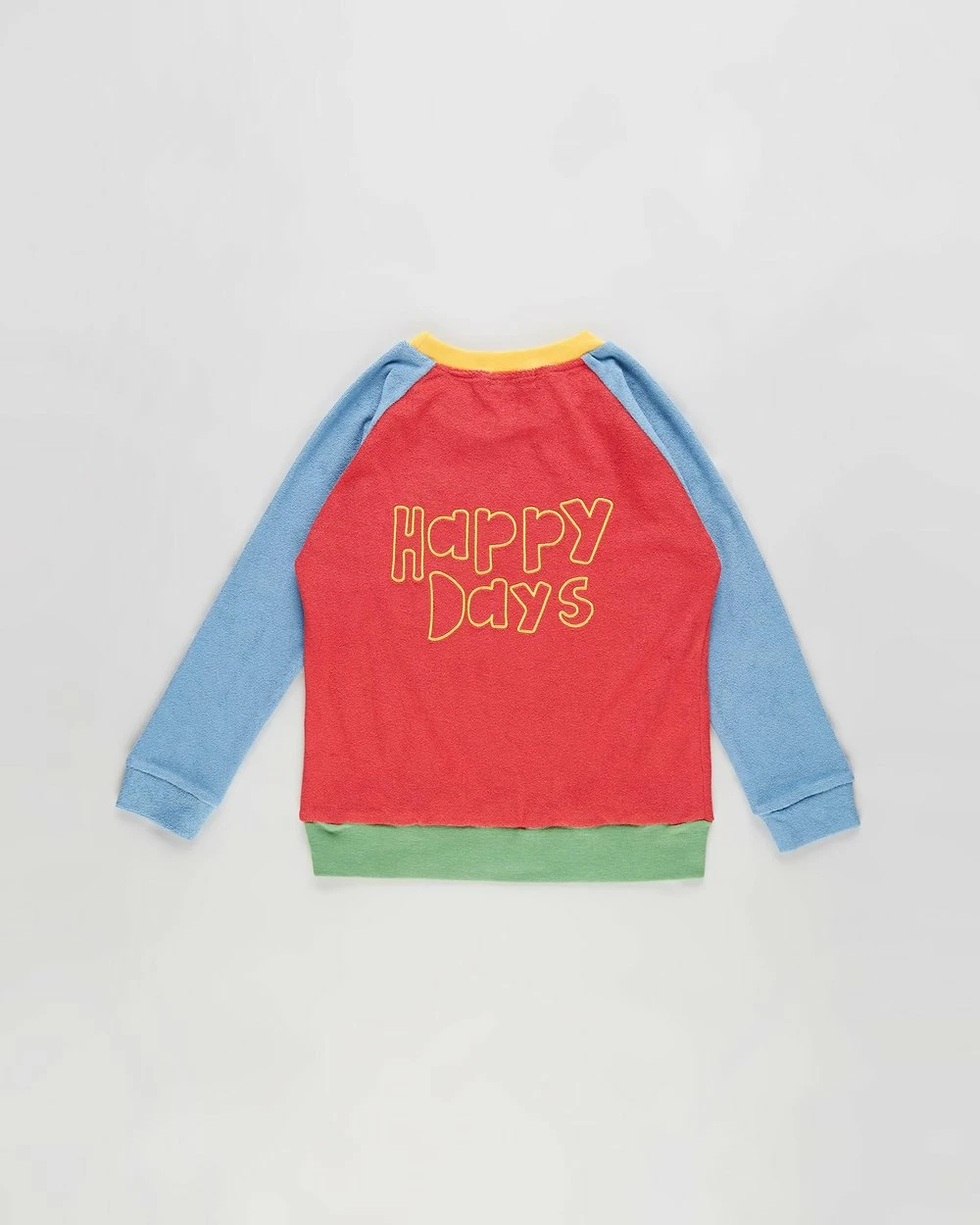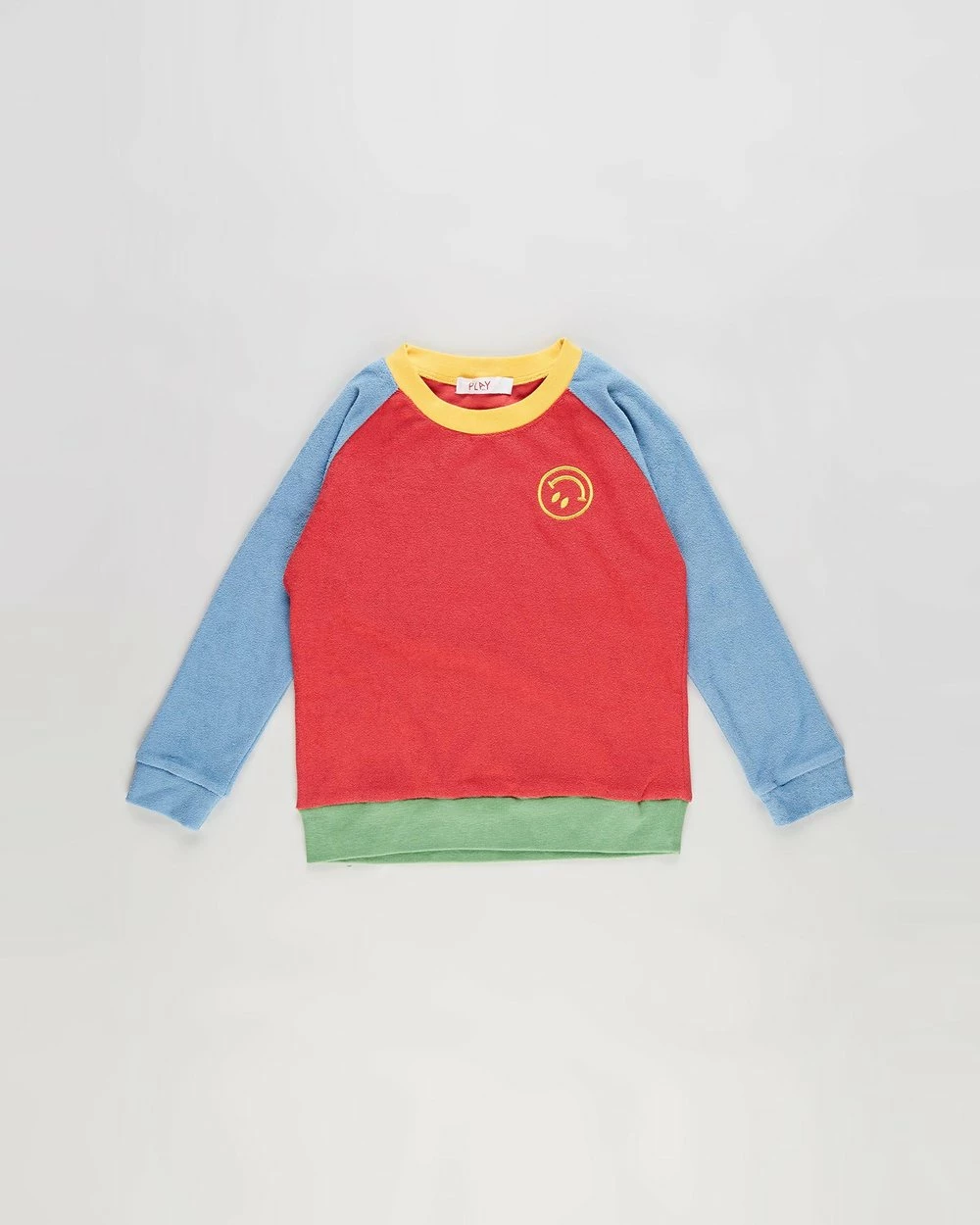 Spun from pure cotton jersey and cotton toweling, the Happy Days Sweater from PLAY etc features multi-colour panels and an upside-down smiley face, for a cheeky sweater happily that embraces all the inevitable spills and stains.
