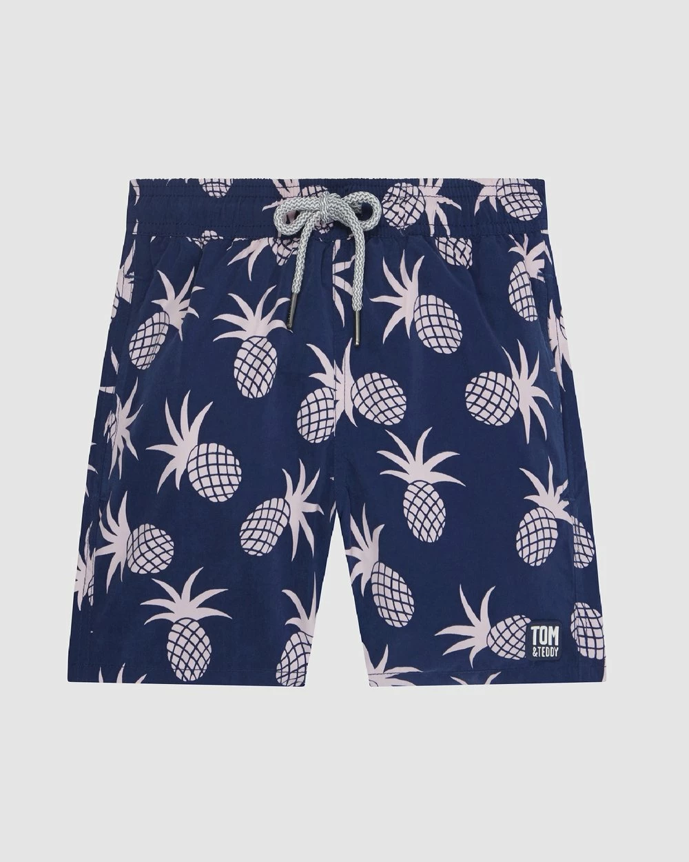 Chlorine resistant, quick-drying and UV protective, the Tom & Teddy Pineapple Boardshorts are a smart and stylish choice for the sunny season.