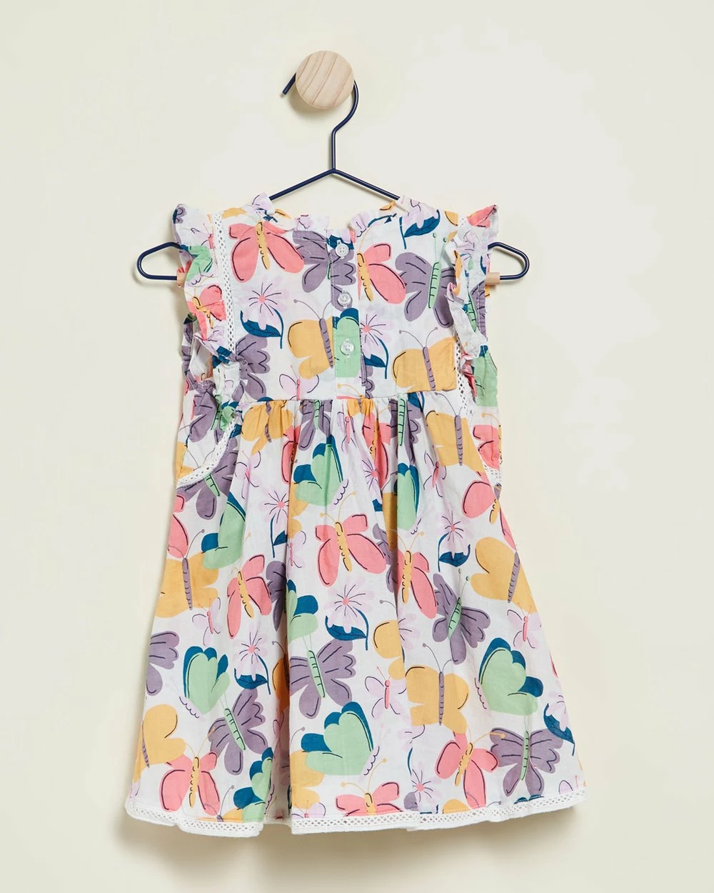 With a neat button-down back and dainty lace trim, the Tess Flutter Sleeve Dress by Cotton On Baby is a sweet pick for sunny days.