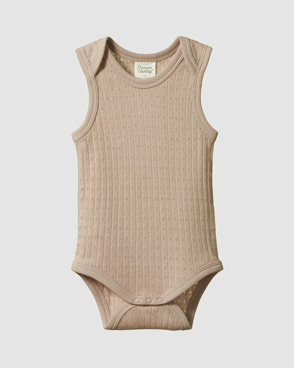 Bring a quality everyday essential to your little one’s wardrobe with Nature Baby NZ’s organic cotton Pointelle Singlet Bodysuit.