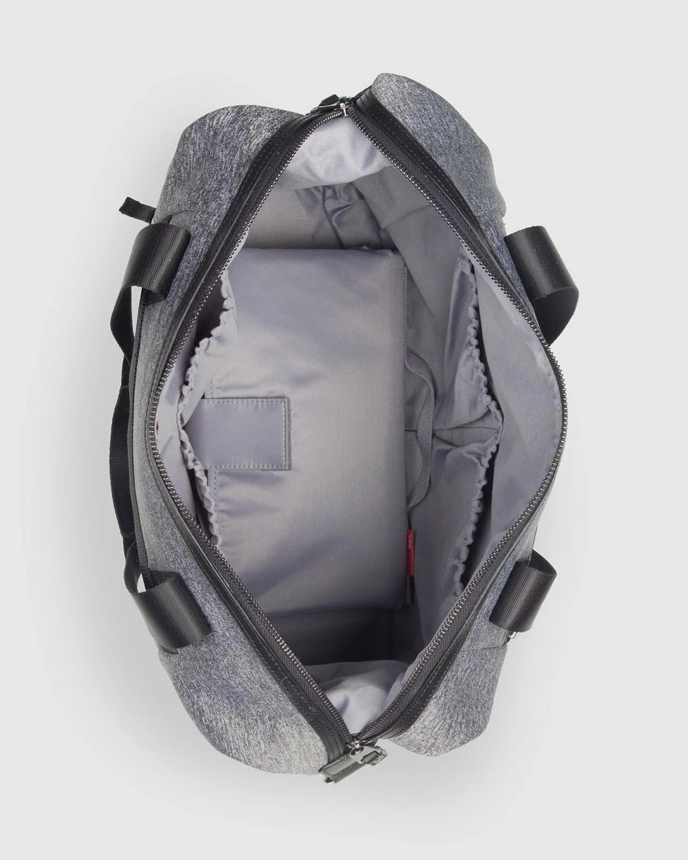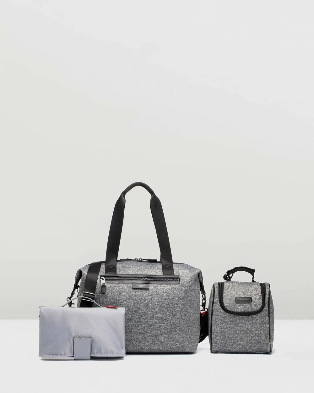 The Stevie Luxe Scuba Diaper Bag by Storksak is the only changing bag you will ever need, with its durable and water-resistant construction, spacious multi-compartment design, padded changing mat and fully-insulated bottle bag.