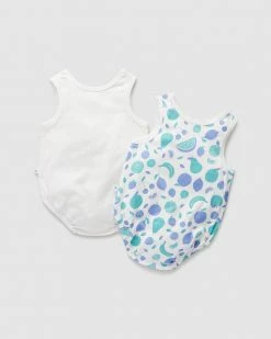 Hot Sale ✔️ Little Green & Co Core Jersey Sleeveless Bodysuit 2-Pack – Babies Tutti Fruitti 🛒