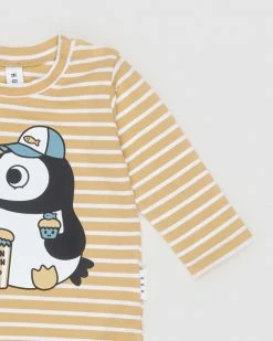 New 🔥 Huxbaby Puffin Muffin Top – Babies-Kids White & Golden Stripe 😀
