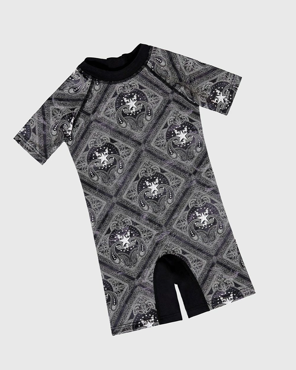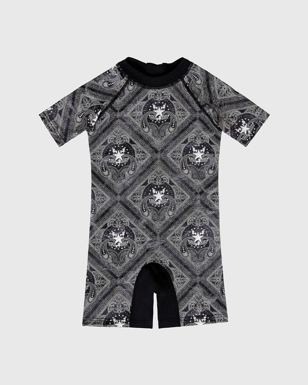 From Australian swimwear label, Aqua Blu Kids, comes the Imperial Sunsuit. Bring some tropical fun to their budding swimwear collection.