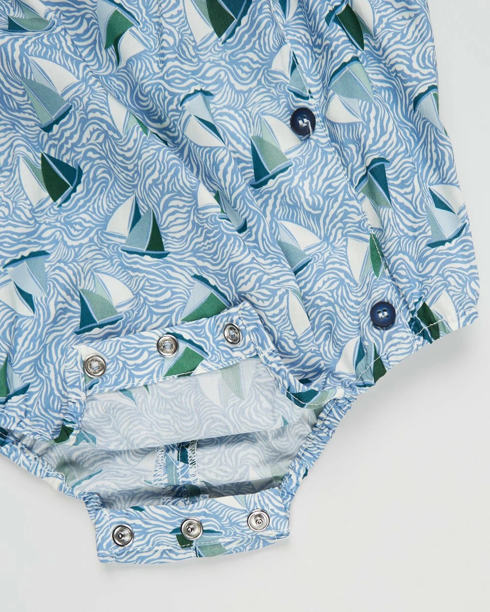 – Button closures to straps and thighs