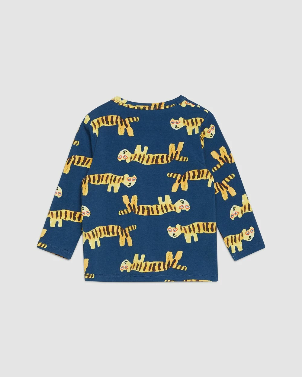 The Tiger Baby LS Tee by Gorman Playground is a printed organic cotton jersey t-shirt. This tee has a straight cut, shoulder press snaps, rounded neckline, organic cotton and elastane jersey fabrication, long sleeves and an exclusive gorman playground x mogu takahashi print.