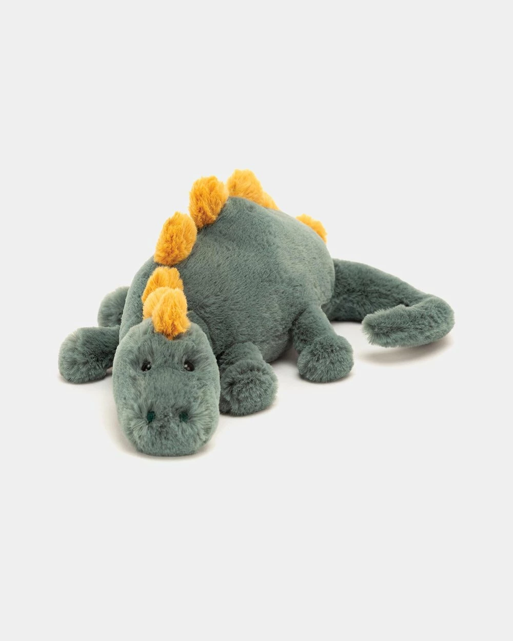 Lolling about and having a think – that’s what Douglas Dino likes to do! This mossy dino has soft mustard spines, a long curvy tail and deep mossy fur. He’ll flump and flop on the bed or the rug for a lovely dino-snore!