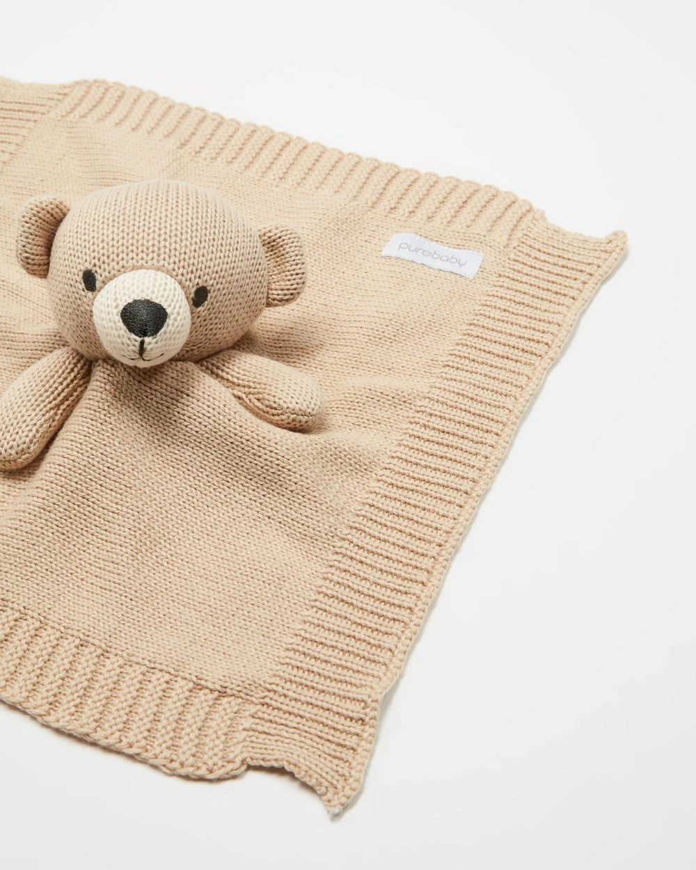 Purebaby’s Knitted Bear Comforter is the perfect companion for every precious newborn’s nursery.