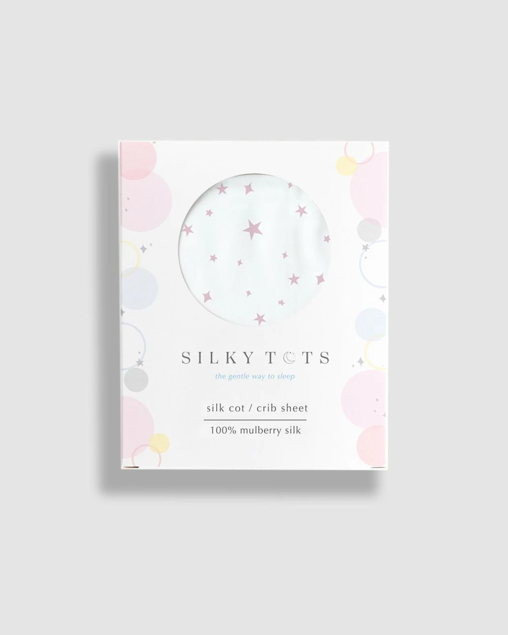 Help prevent baby bald spots and promote regrowth of baby’s luscious locks with Silky Tots 100% Mulberry Silk Cot Sheets. Perfectly fitted to the cot mattress, your babyโs head will gently glide across the liquid-smooth, hypoallergenic Silk Cot Sheet surface, reducing the friction that leads to knotting, matting and the dreaded baby bald spot