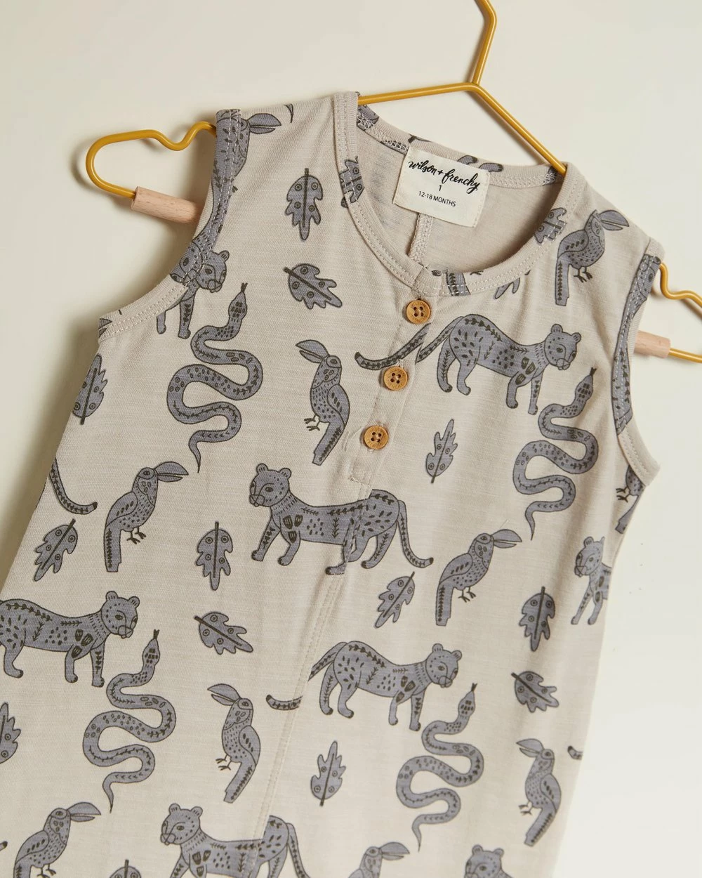 Let your little one spend their summer days in the Organic Boyleg Growsuit by Wilson & Frenchy. This piece comes with snap button fastening to crotch for easy wear and features a fun, all over print.