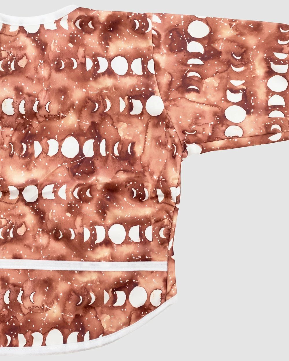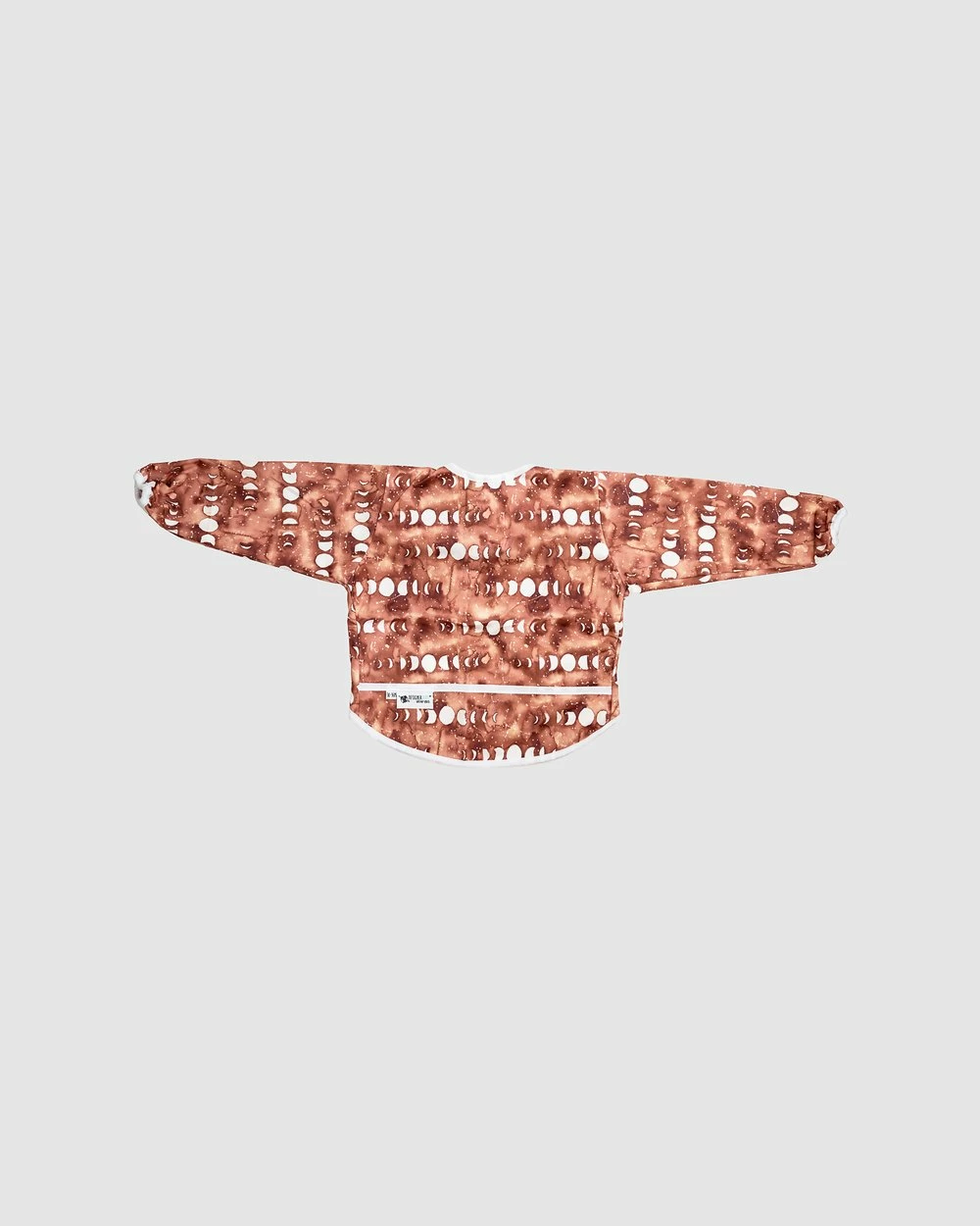– Made to fit from 6-18 months, providing generous coverage to protect clothes underneath- Exclusive custom-designed hand illustrated prints. – A PUL outer so that minor spills can be wiped off- Long sleeves and elasticised wrists will help to protect clothing underneath. – Velcro closure for safety and ease of removal- A front pocket to catch any spills- Hook loop for hanging- Australian owned and designed for over a decade