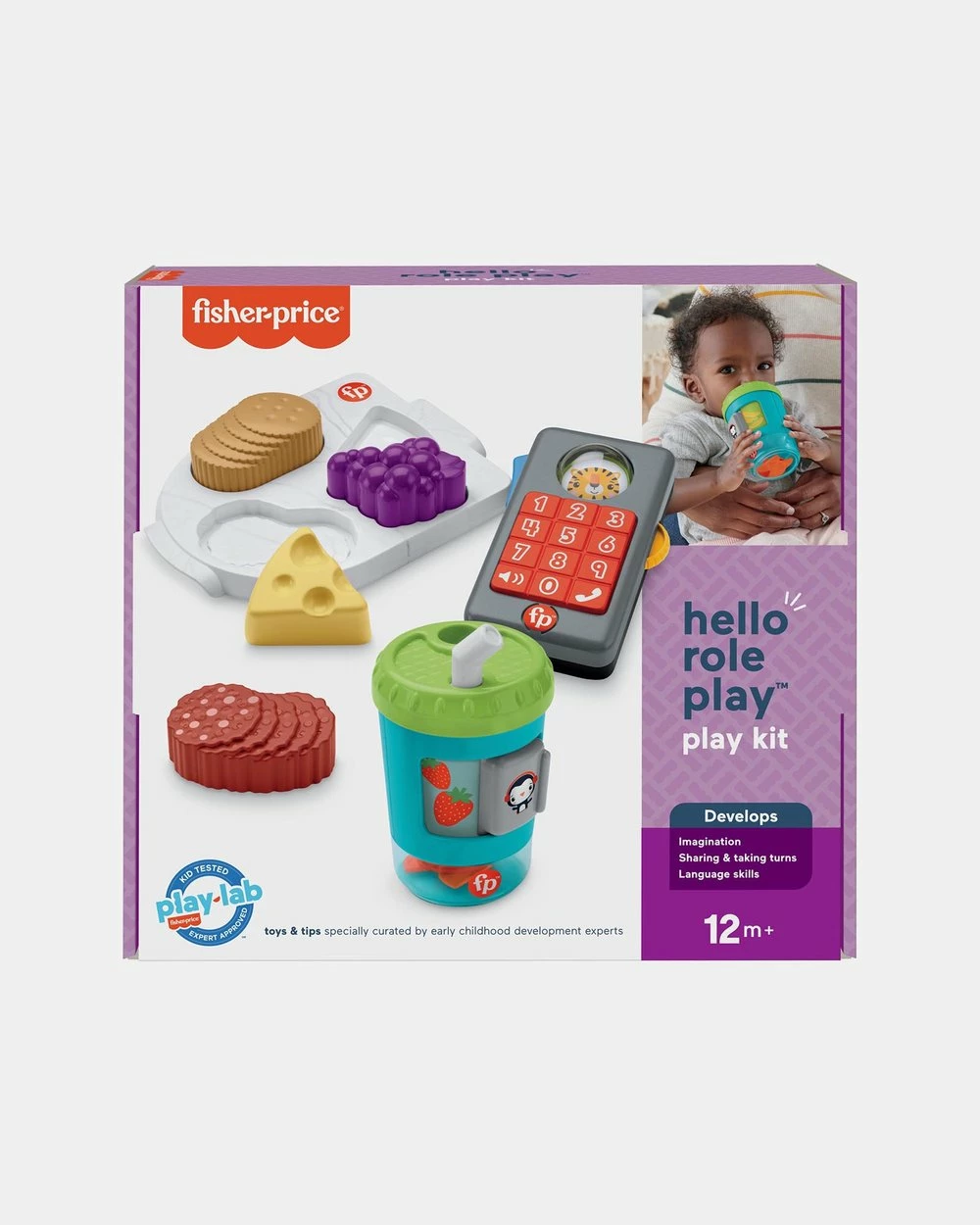 The Fisher-Price Hello Role Play Play Kit is a specially curated gift set featuring three activity toys for little pretenders to explore, plus play tips from our child development experts at the Fisher-Price Play Lab. This pretend play set includes a toy phone with colourful lights and sounds, a smoothie cup activity toy to twist, rattle and slide, and a snack-themed puzzle with 4 shapes to sort. Designed for infants and toddlers ages 12 months and older, this play kit encourages super-fun imaginative play while exercising kids’ fine-motor and problem-solving skills.