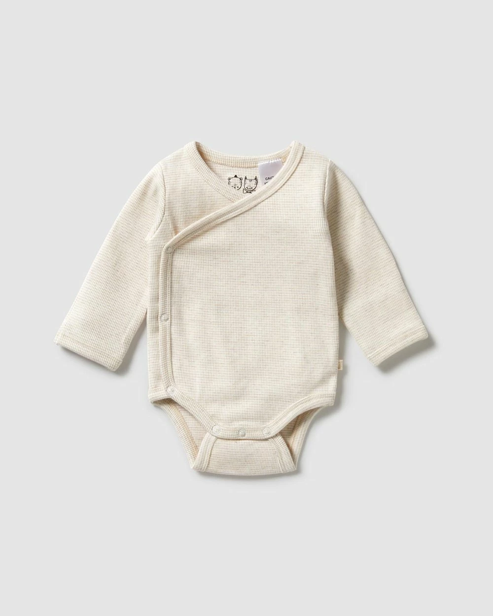 – Crossover snap closure; kimono design