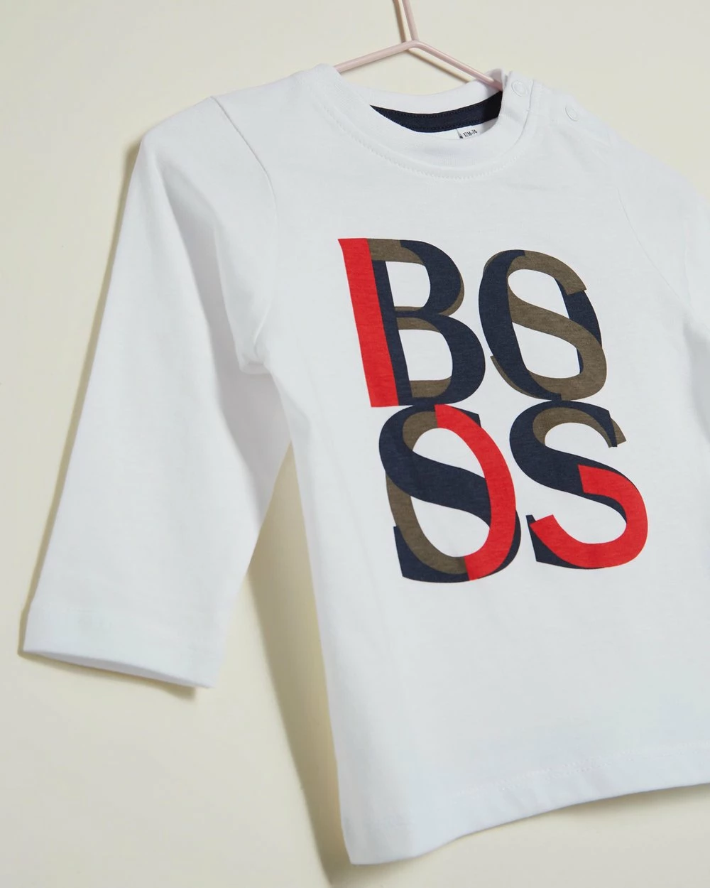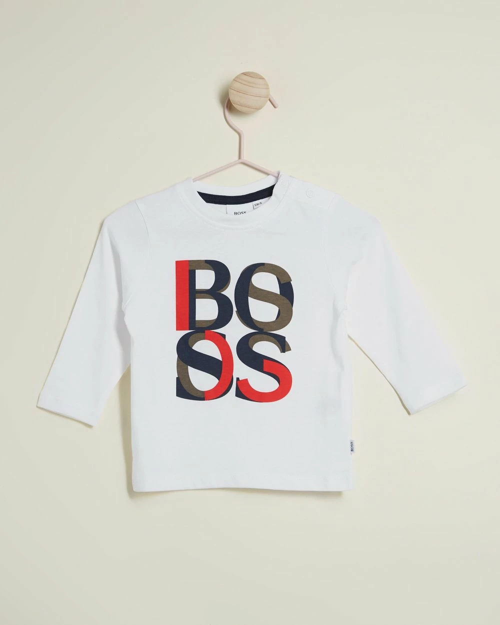 Your little one will be fitted with designer flair in the Long Sleeve Printed T-Shirt by BOSS.