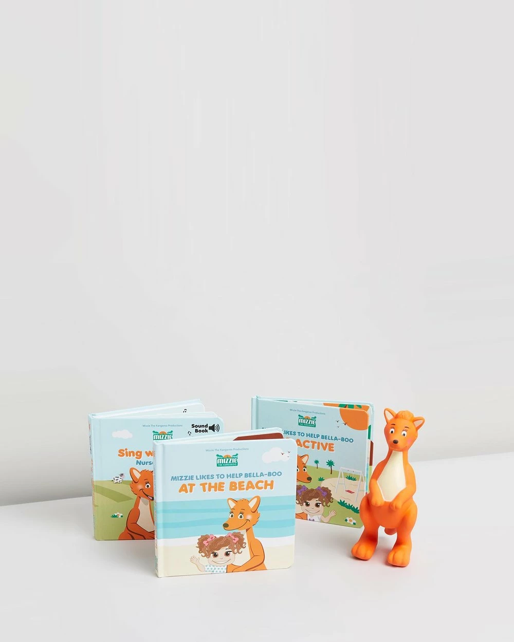 The Newborn Gift Set For The Curious Baby from Mizzie The Kangaroo includes a teething toy, sound book and two touch and feel books to enrich the sensory development of your bub.