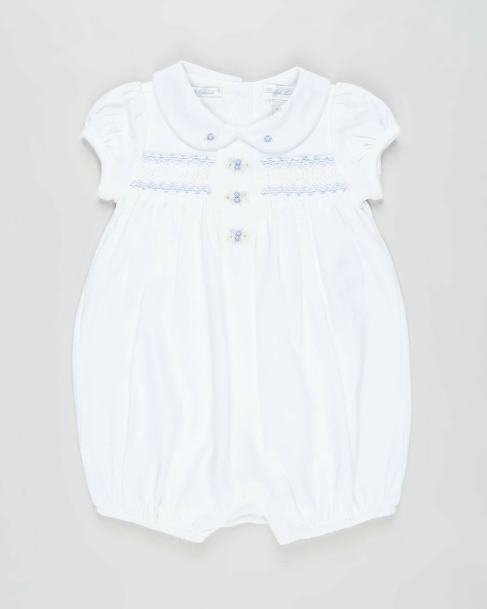 Refresh their spring edit with Polo Ralph Lauren‘s pure cotton Smocked One Piece Romper, a vision of delicate embroidery and lace.